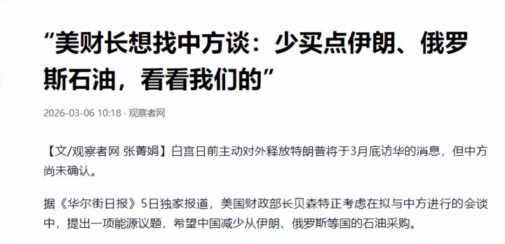 贝森特想用这次和中国石油交易换取中国的钱,也让中国同俄罗斯以及伊朗的关系疏远,真的是诡计多端。
