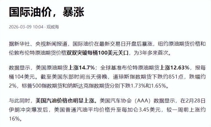 霍尔木兹海峡被封锁让全球各个国家感到无奈,全球油价已经飙升到16%。
